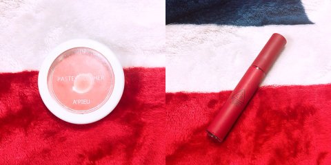 어퓨 파스텔 블러셔 CR04, 3CE 벨벳 립 틴트 프라이빗 색상이야