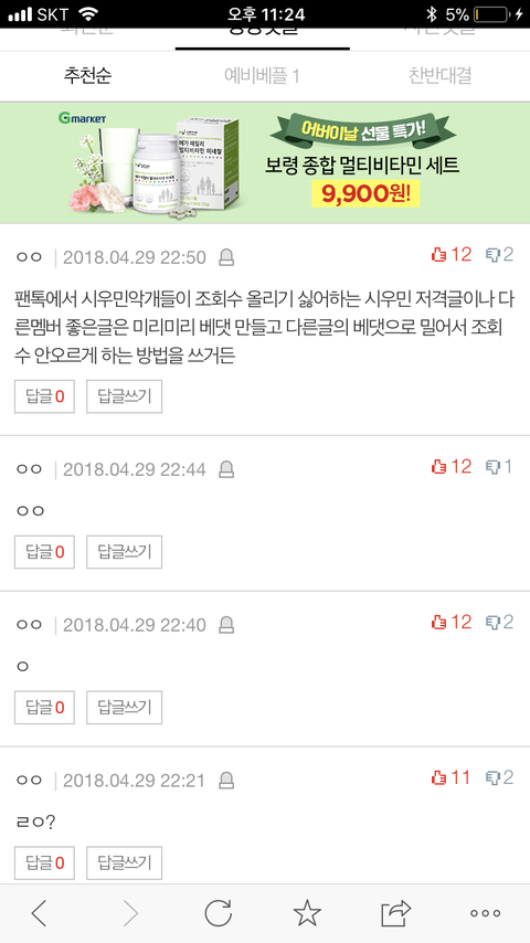 윽 이딴 글이 뭐라고 몰려와 그것도 이렇게 티 내면서 븅신들아