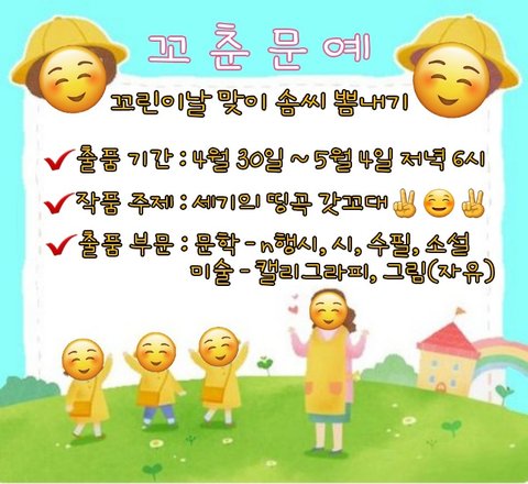 ☺문학 부문 - 꼬대상/금상/은상/동상 각 1꼬야