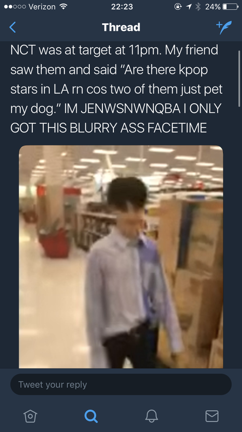 도착한 첫날 태일님 타켓 (대형슈퍼) 에서 목격담 떴어 ㅋㅋㅋㅋㅋ 강아지 쓰담쓰담 해줬대 ㅎㅎ