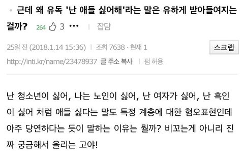 아이를 싫어한다는 말은 왜 해도 되는걸까요?