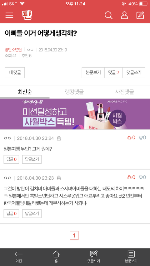 밑밑 이삐들 이거 어떻게 생각해 여기서(밑글도)