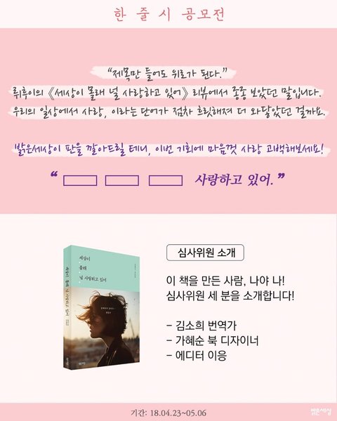 다른 사람들 한 줄 시 구경하는 재미는 덤입니다.