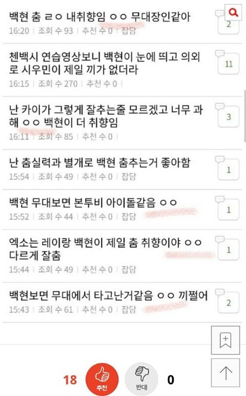 백현악개글 올라오자마자 엑톡 ㅈㅎ글 도배~
