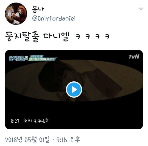 https://twitter.com/0nlyfordaniel/status/991290159541899264?s=19 머리다머리 나도 천장에 붙여야겠는데...?ㅋㅋㅋㅋㅋㅋㅋ