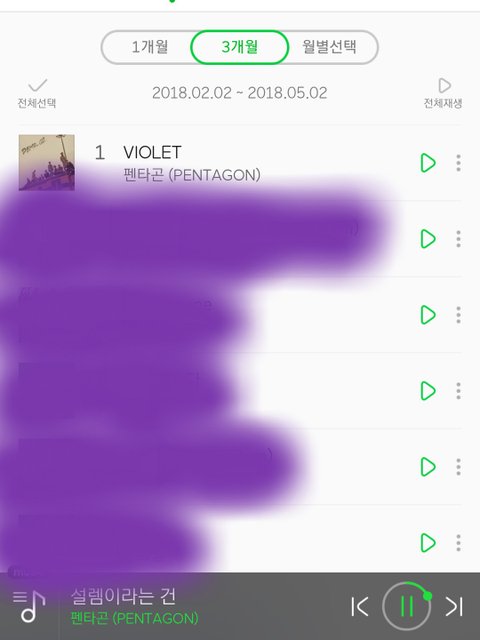 타팬인데 요즘 펜타곤 노래 진짜 많이 듣는데 그 중에서도 바이올렛을 제일 먼저 들었는데 최근 3개월 동안 제일 많이 들음 ㅋㅋㅋㅋ 멜론 달고 사는데 진짜 짱 좋다 ㅠㅠㅠㅠ