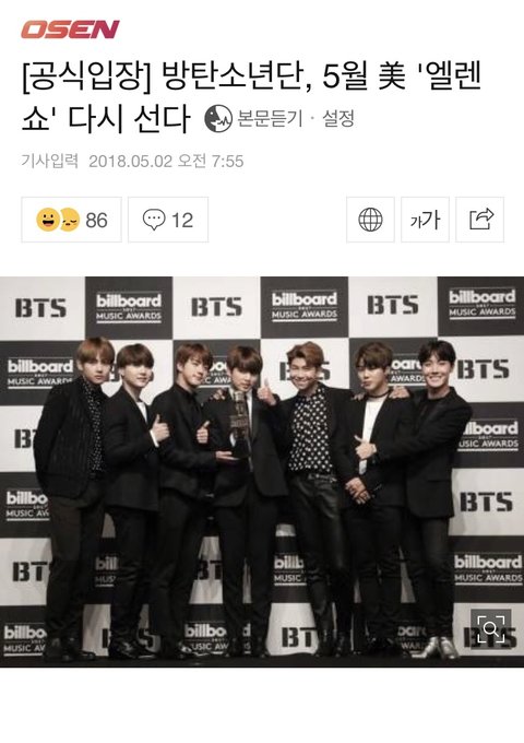 빌보드에서 신곡을 발표하고 엘렌쇼가서 신곡 홍보도 하는거 같은데 진짜 대단한거 같음.