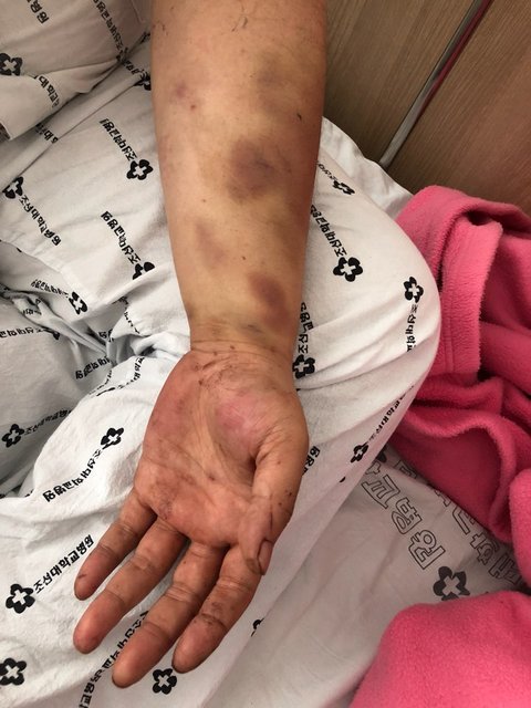 골절 치아 온몸 멍투성이 얼굴모든 부분이 풍선처럼 부풀어 있었습니다