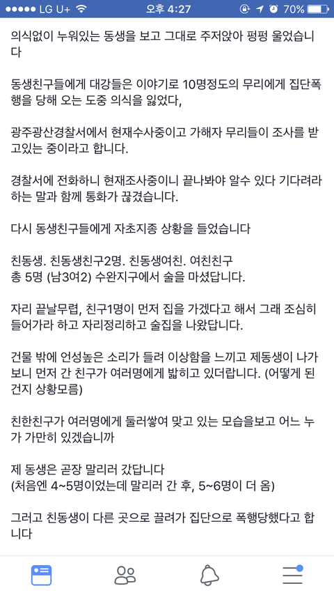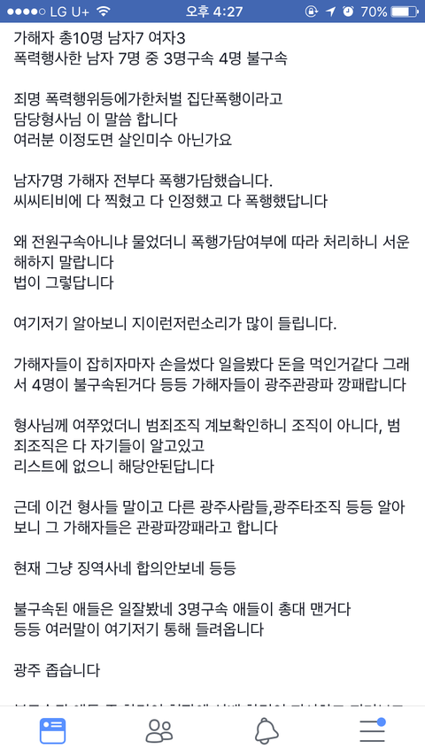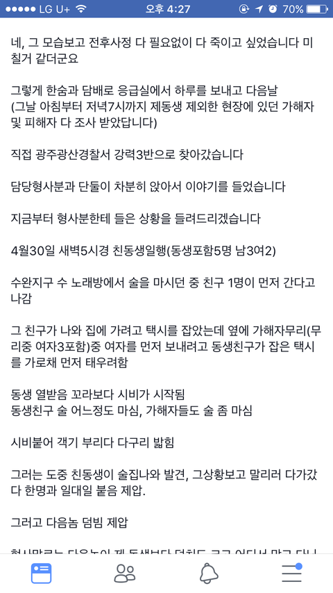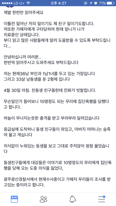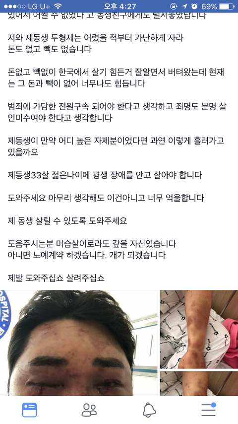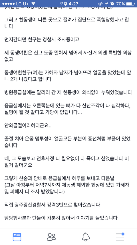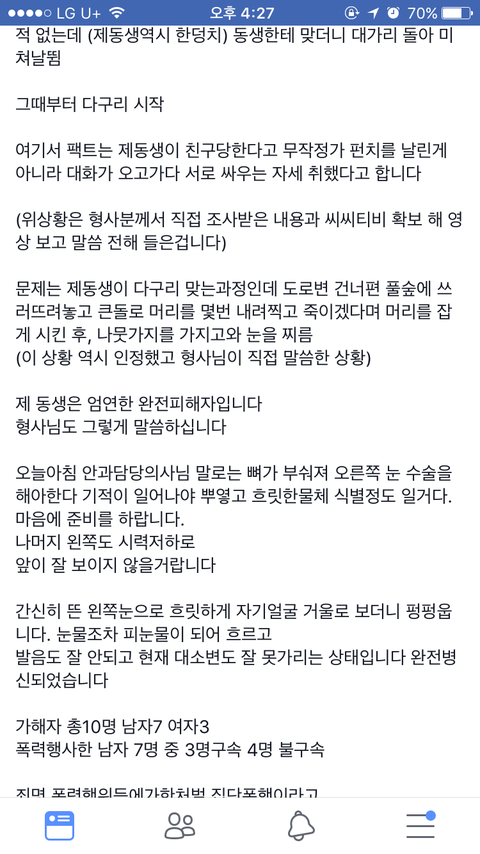 피해자 얼마나 다친지 못본사람 페북 링크타서 봐봐 진짜 사람이 어떻게 저렇게 팰 수 있는지 의문일정도로 심각함