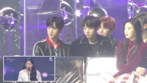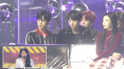 mma 정국이 ㅇㅇㅇ님 수상소감 리액션영상 경청하는거 귀여워서 보고잇었는데 새삼 얼굴 온도차 쩌는거같아서 캡쳐해옴