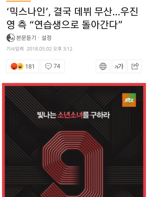 지금 기사떴는데 믹스나인 데뷔 무산됐다는데 ㅋㅋㅋㅋㅋㅋㅋㅋㅋㅋㅋ