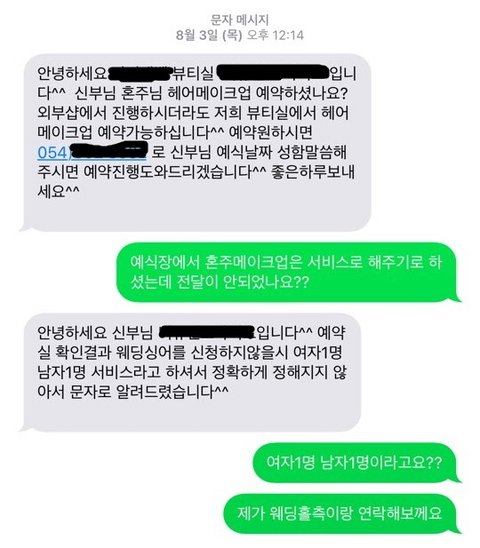그러나 웨딩홀측의 입장은 외부업체 부르는지 우리한테 말 안했고
