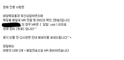 위의 내용은 뮤지컬웨딩 대표님이 웨딩홀과 전화미팅후