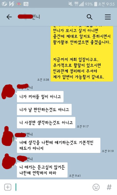 언니가 저희한테 이래라 저래라 하실 처지는 아니신거 아닌가요?