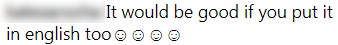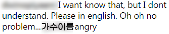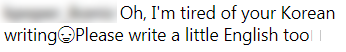 대충 번역해보면 니 한국어 글씨에 질렸으니까 영어도 좀 써달라;;