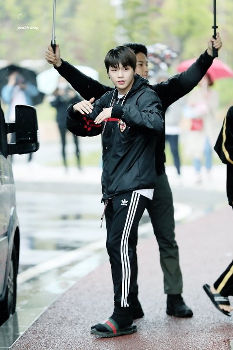 강다니엘 슬리퍼 신었는데