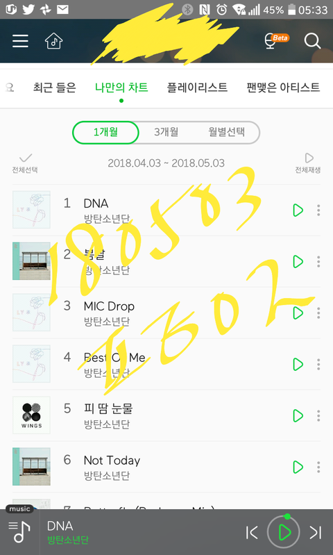 2. 난 맠드롭 아오키버전 한곡틀어놓고 인식 ㅡ 데이터 삭제 연속해서 실험해봤는데 대략 7번정도 가능. 익숙해지면 한곡당 더 여러번도 가능할 듯. 거의 4분짜리니까 말 그대로 10분만해도 16~7번 가능해.