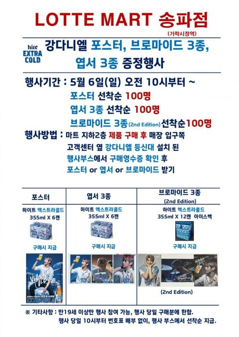 ㄹㄷㅁㅌ 송파점 5월6일 하이트 강다니엘 브마 행사