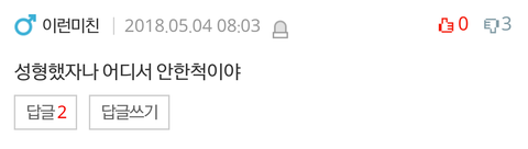 추가) 악플 다시는 분들 어떻게 하나같이 다 남자이신지... 평소에 남성에 대한 악감정 없었는데 이번 일로 생길거 같네요... 성괴 뜻 모르냐구요? 알아요. 본문에 안써서 그렇지 이미 성괴라는 말 들었기 때문에 쓴 말이고, 단순하게 제게 예뻐졌다고 말하고 싶었으면 예뻐졌다고 했겠죠. 적어도 제가 성형한거 아니라고 했으면 그 선에서 더 이상 성형했냐고 묻지 않았을 겁니다. 성형했냐고 묻는 뜻은 예뻐졌다의 뜻이 아니라 정말 "성형했어?"입니다.