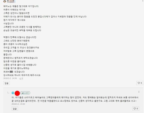 그래서 7,8살 아이들이 소리지르며 뛰는건 괜찮냐고 댓글달았더니