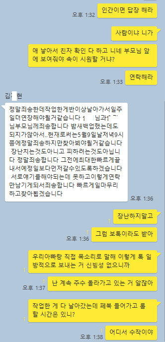 진짜 미치겠다 부모님 얼굴 어떻게 봐... 연락이 안 되는데 어떻게든 해결하라고 하시고...