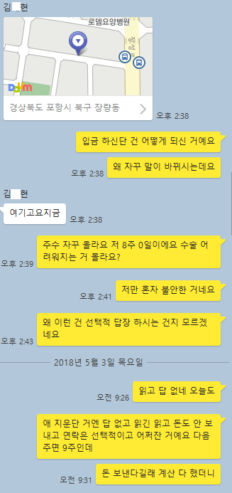 계약 한 거로 아는데 계약금으로라도 수술비 달라고