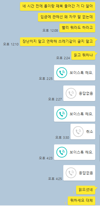 그래서 지 기분 내킬 때나 와이파이 잡힐 때만 연락이 되는 편이야