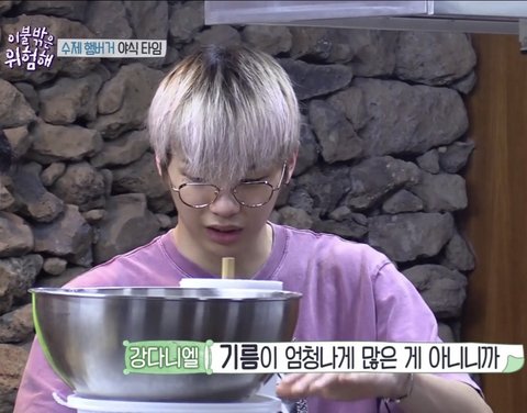 이불밖에서 강다니엘 햄버거 만들어먹는거봤더니