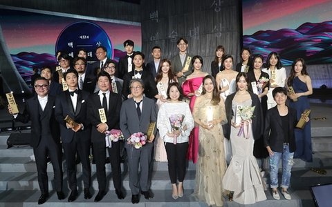 그렇게 볼거리가 가득했던 백상예술대상이 끝이난 뒤 수상자들을 대상으로 찍은 한 장의 사진이 올라오게되는데..