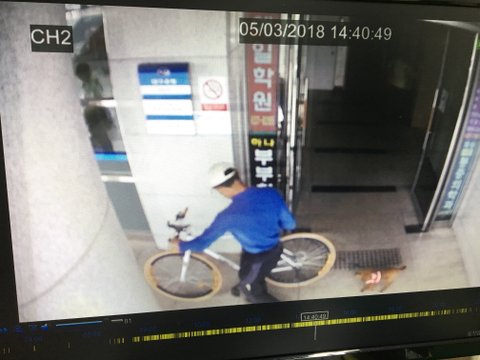 뒤만 들면 쉽게 가지고가겠지만 cctv가 있고 사람이많이 다니는길이고 바로옆이 파출손데! 이렇게 쉽게 태연하게 개끌고 자전거들고가버릴줄이야..ㅜㅜ