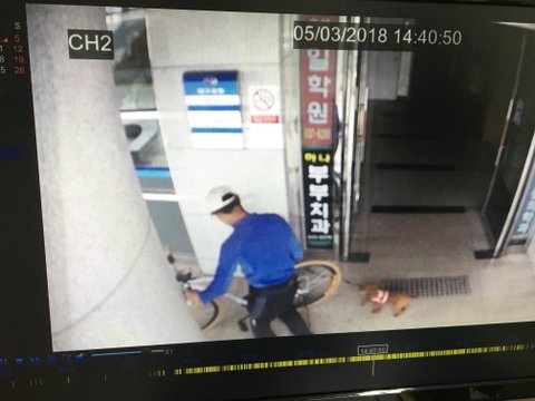 뒤만 들면 쉽게 가지고가겠지만 cctv가 있고 사람이많이 다니는길이고 바로옆이 파출손데! 이렇게 쉽게 태연하게 개끌고 자전거들고가버릴줄이야..ㅜㅜ