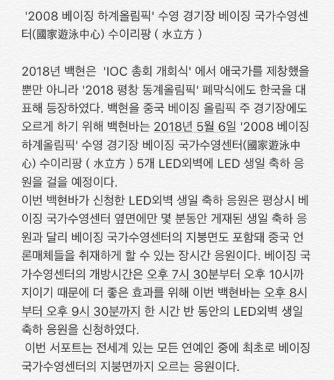 백현바 생일 서포트 Part. 9 - 중국 북경 올림픽 경기장