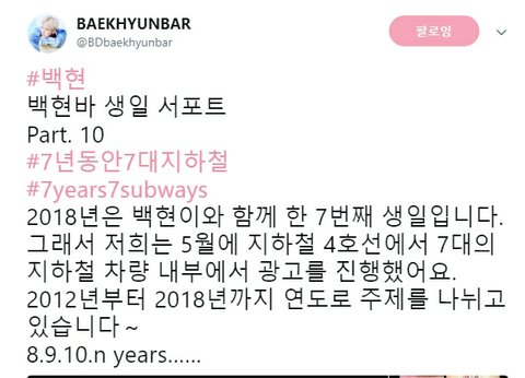 백현바 생일 서포트 Part. 10 - 지하철 4호선 7대 내부광고