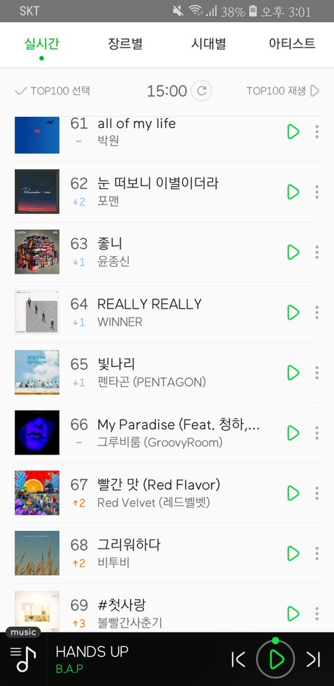 요즘 나도 모르게 순위 실시간으로 확인하고 있는데 80위권에 없길래 차트아웃 된 줄 알고 아쉬워했는데 60위권....
