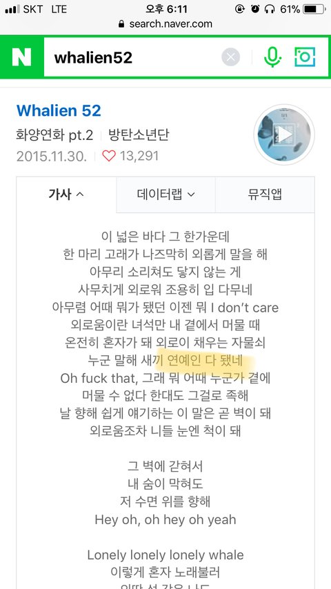 가사가 맞는거야? 네이버에도 쳐보니까 저렇게 나오네...