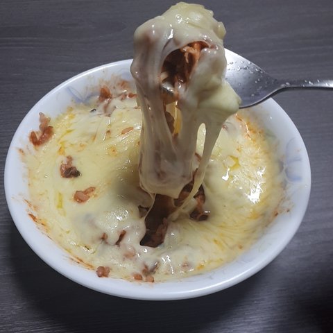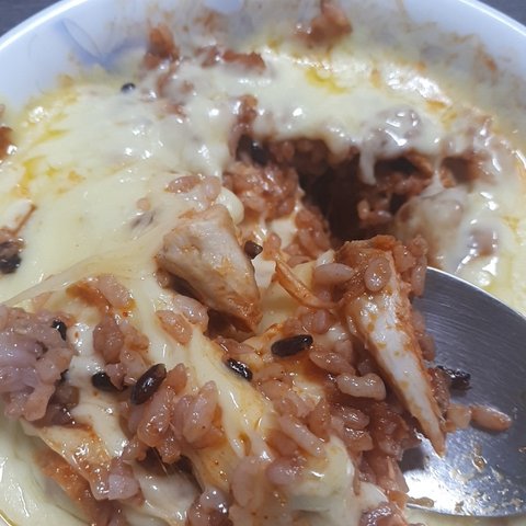 치즈 유통기한 거의 다 돼서 만든 치킨치즈밥임ㅎㅎㅎㅎ +치킨은 후라이드 치킨이고 치즈는 유통기한이 오늘이라 그냥 다 넣었어 그래서 많은거야!