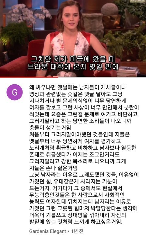 뭔지 알아들어? 유튜브에 닷페이스나 스브스 뉴스만 봐도 페미니즘에 대해서 정확히 알 수 있는데 알아보지도 않고 페미는 정신병이다! 만 외치고 다니는 페미혐오자들이 더 끔찍해.
