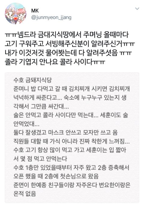 숙소에 있는 멤버수 만큼 음식 사가고 그런 거 ㅇㅇ 조카 다정해 ㅅㅂ 사랑해 사랑해