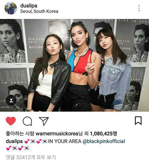 어제 내한 공연한 두아리파 인스타에 블랙핑크랑 찍은 사진 올라옴