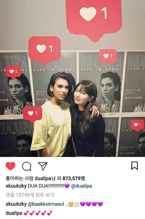 수지 인스타에 수지가 두아랑 찍은 사진 올리니까 직접 댓글까지 달아줌
