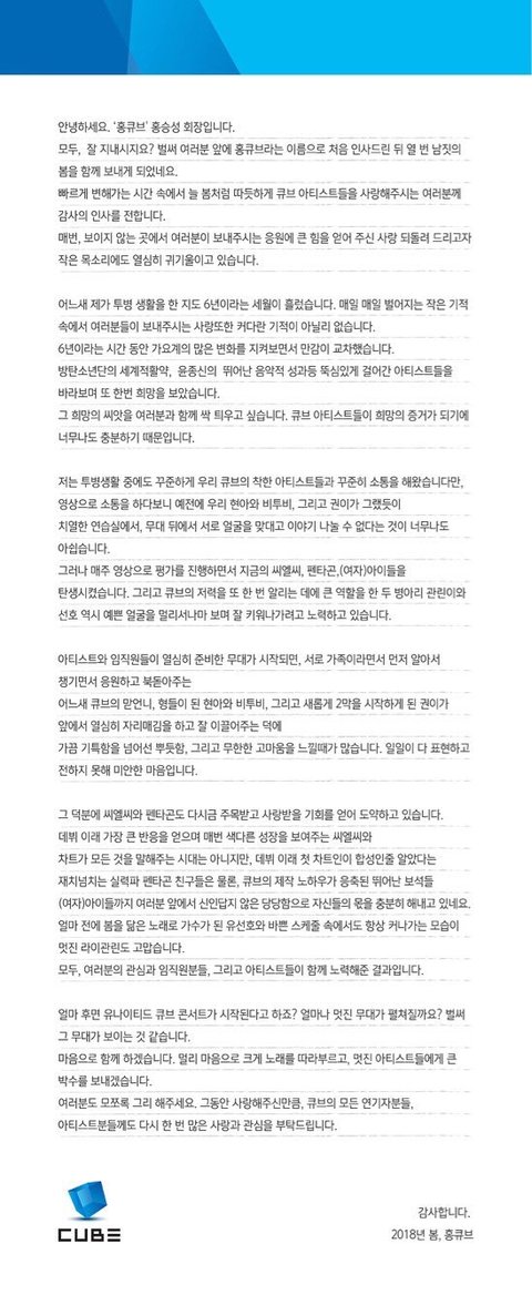 큐브고 뭐고를 떠나서 사람으로서는 홍승성 회장님 건강관리 잘 하셨으면 좋겠고