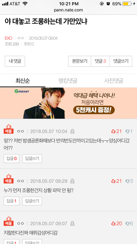 추천0 반대2개 박힌글에 베플 추천수가 21개ㅋ