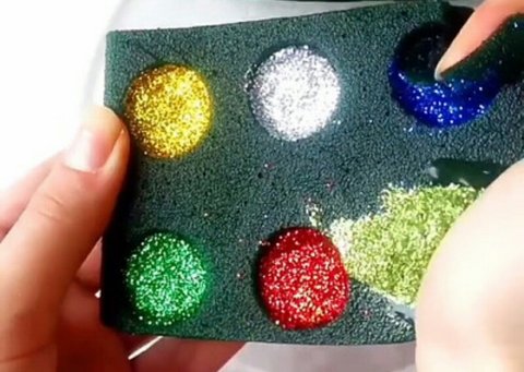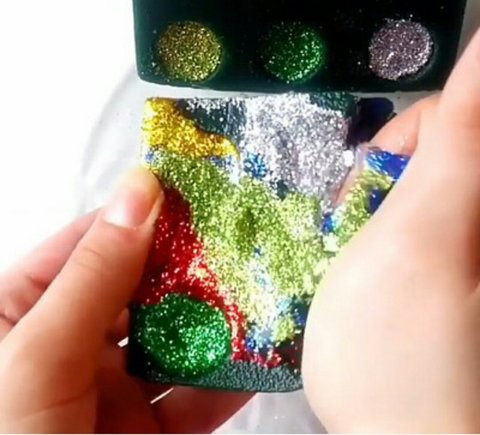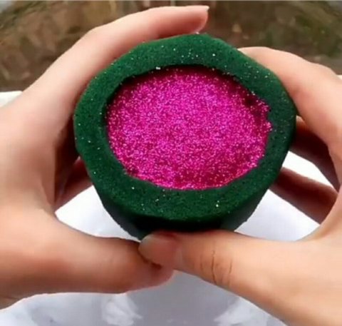 초록색폼에 가루넣고 뿌시는거임.