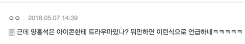 그리고 얘는 아이콘없으면 안되냐, 아이콘 언급에 집착하냐는 댓글 있었는데 지속적으로 양홍석이 언급한 적 없다고 딱 잘라 말할게. 이 때 몇 년전에 이 프로그램에서 엠넷 타의적 연출으로 딱 한 번 , 그리고 데뷔 쇼케이스 때, 몇 년 전에 기자들이 물어봐서 그 때 고맙다고 언급 한 번. 그게 끝이야 딱 두 번. 그 후로 데뷔 이후에 한번도 아이콘분들 언급한 적 없어 펜타곤이 아이콘 조롱한다 이 말 역시 사실이 아니고. 자발적으로 언급한 적 한 번도 없고 누군가가 질문했을 때만 대답한거야.