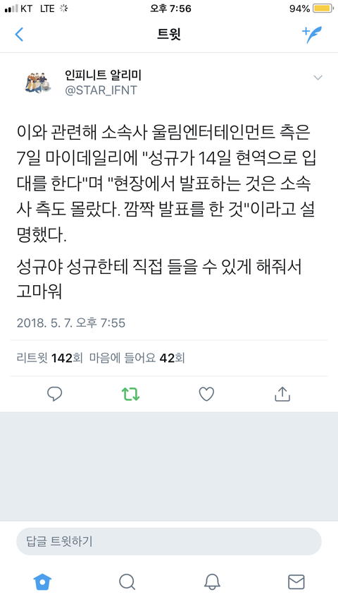 성규한테 직접 들어서 다행인거같아