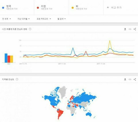 게다가 구글트렌딩하면 정국이 제일 후달려 ㅋㅋ
