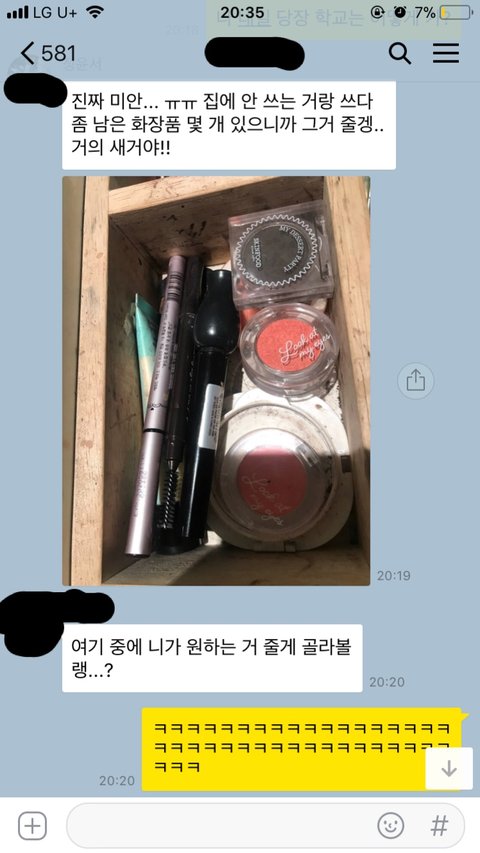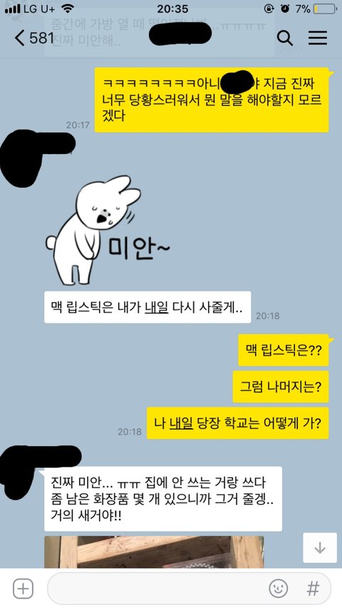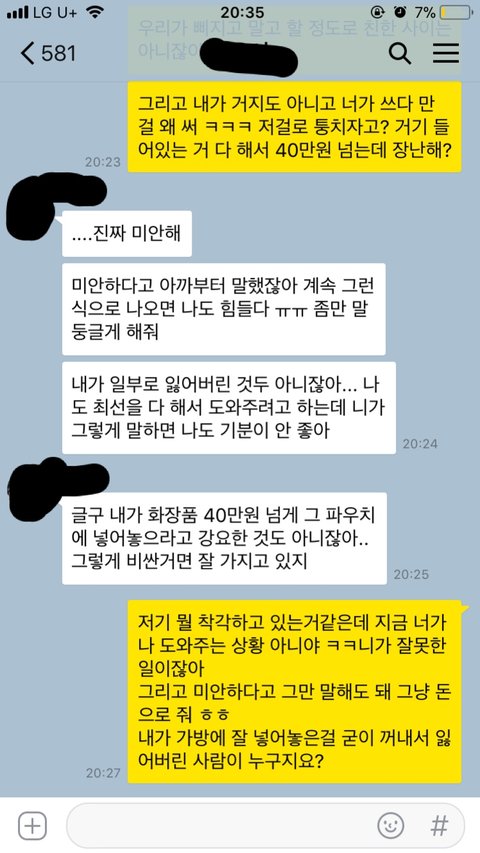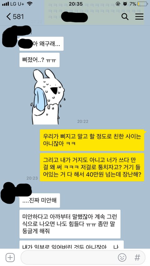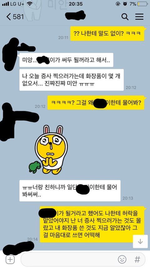계속 미안하다고 사과하는데다가 돌려받기까지해서 그 이상 뭐라고 하지는 못했고 그냥 다음부터 내꺼쓰지 말라고 하고 그렇게 끝났어ㅋㅋ.. 너무 싱겁게 끝났지 근데 돌려받아서 할말이 없더라
