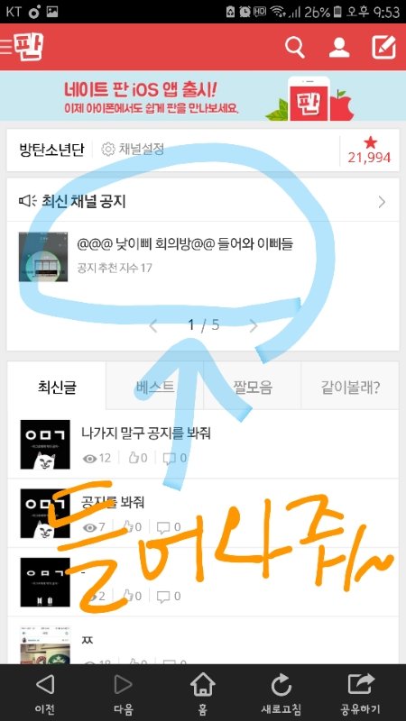 지금 공지에 회의방있어! 어느정도 의견 모아지긴 했는데 늦게오는이삐들 있어서 아직 끝내지 않았으니까 들어와줘~ 밑에 사진에 보이는 공지야~