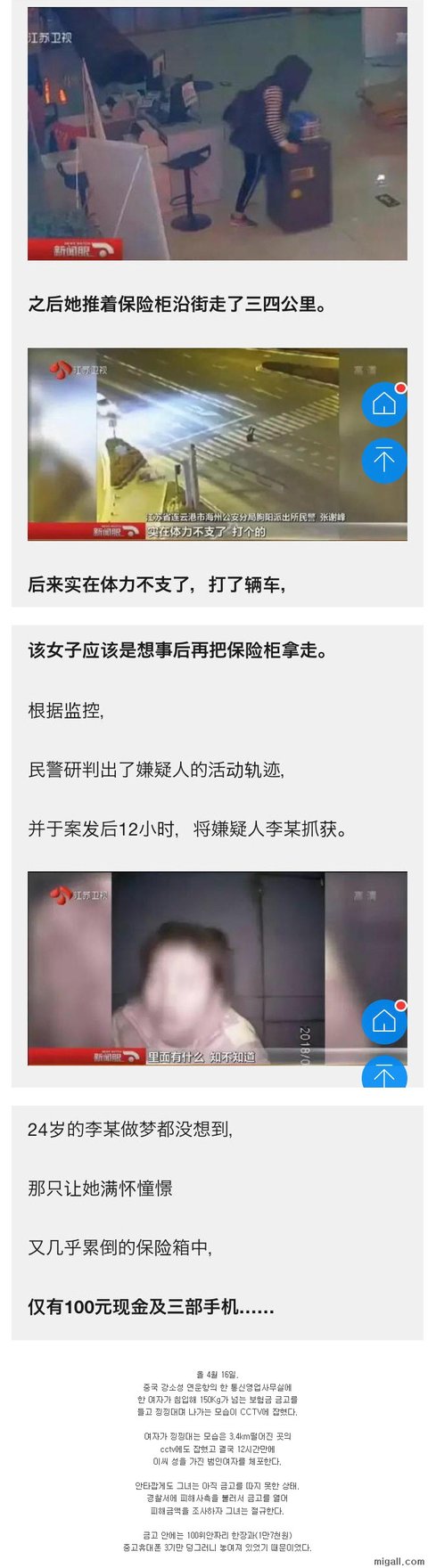 150kg짜리 금고를 가지고 4km를 달아난 여자