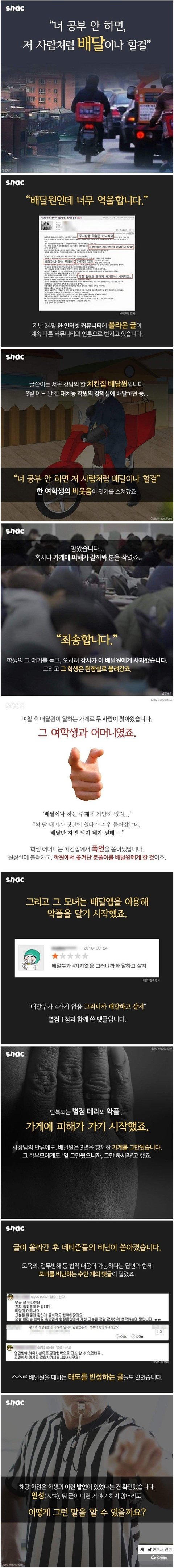 너 공부 안하면 저 사람처럼 배달이나 할걸